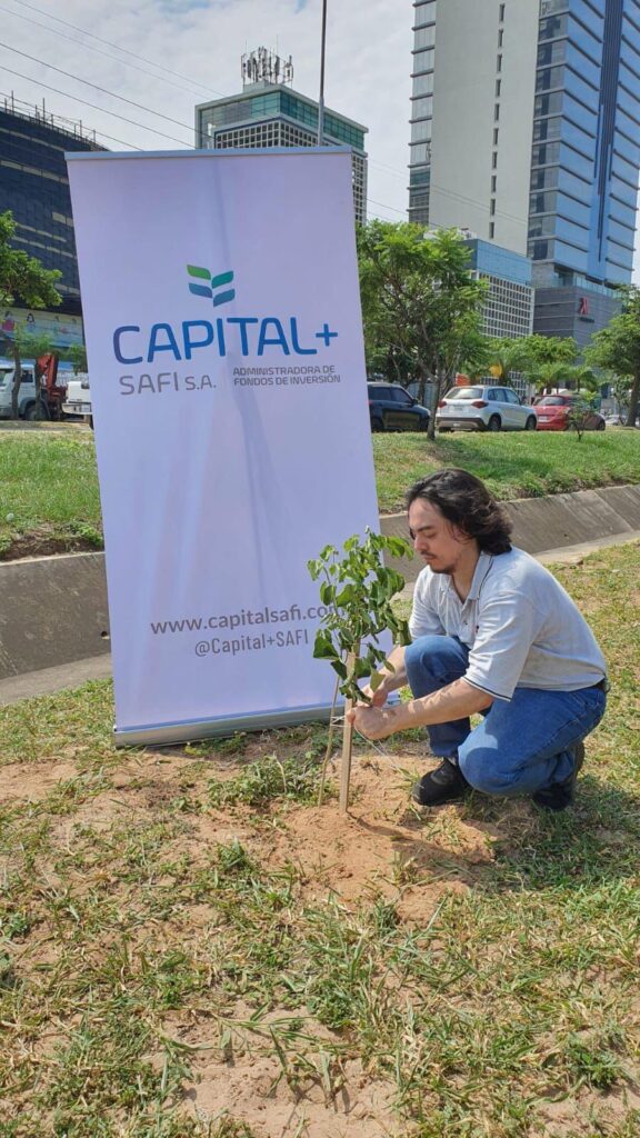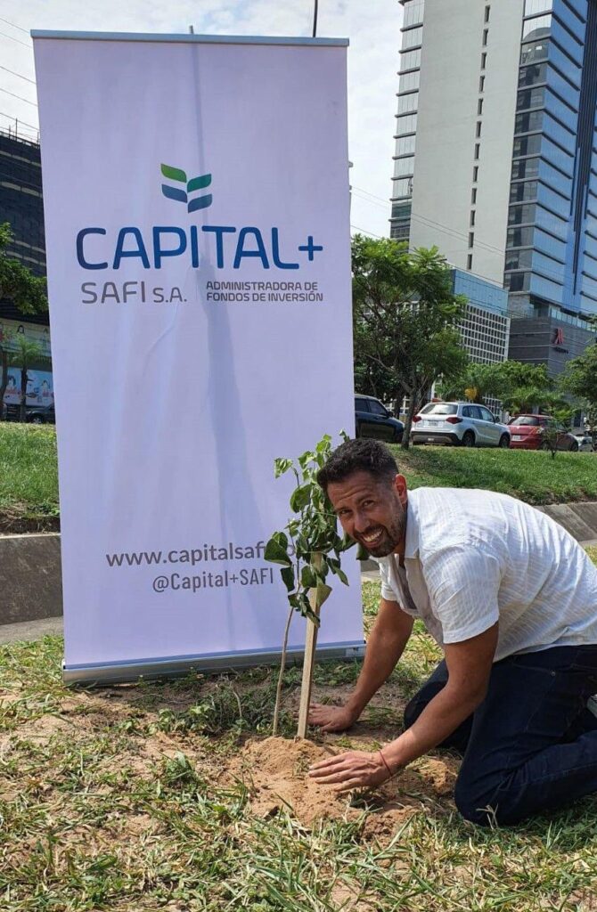 Ejecutivos de CAPITAL + SAFI S.A. en conjunto a FUNDARE SANTA CRUZ realizaron la actividad grupal de arbolización urbana, donde se llegó a sembrar 150 plantines como símbolo del compromiso de la disminución de huella de carbono.
