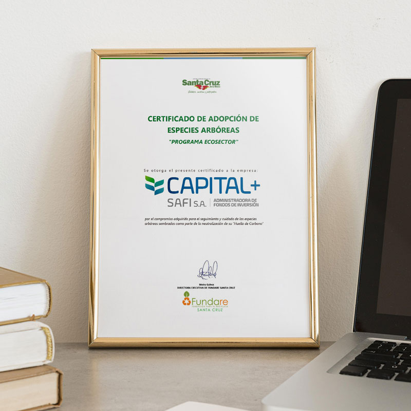 CAPITAL + SAFI S.A. agradecemos a FUNDARE SANTA CRUZ por el Certificado de Adopción otorgado por la participación en el programa “Ecosector” de la Fundación para el Reciclaje de CAINCO – Fundare. Donde se tuvo el objetivo de sembrar 150 plantines en un espacio público urbano.