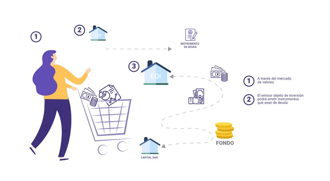 Cualquier emisor (Emisor Objeto de Inversión, EOI) puede emitir un instrumento de deuda (de acuerdo al ordenamiento jurídico vigente) o acciones y ofrecer en venta el mismo directamente a un fondo de inversión cerrado para obtener financiamiento. El Fondo podrá adquirir dicho valor, según su propia evaluación y condiciones de mercado siguiendo lo establecido en su política de inversión y reglamento interno.