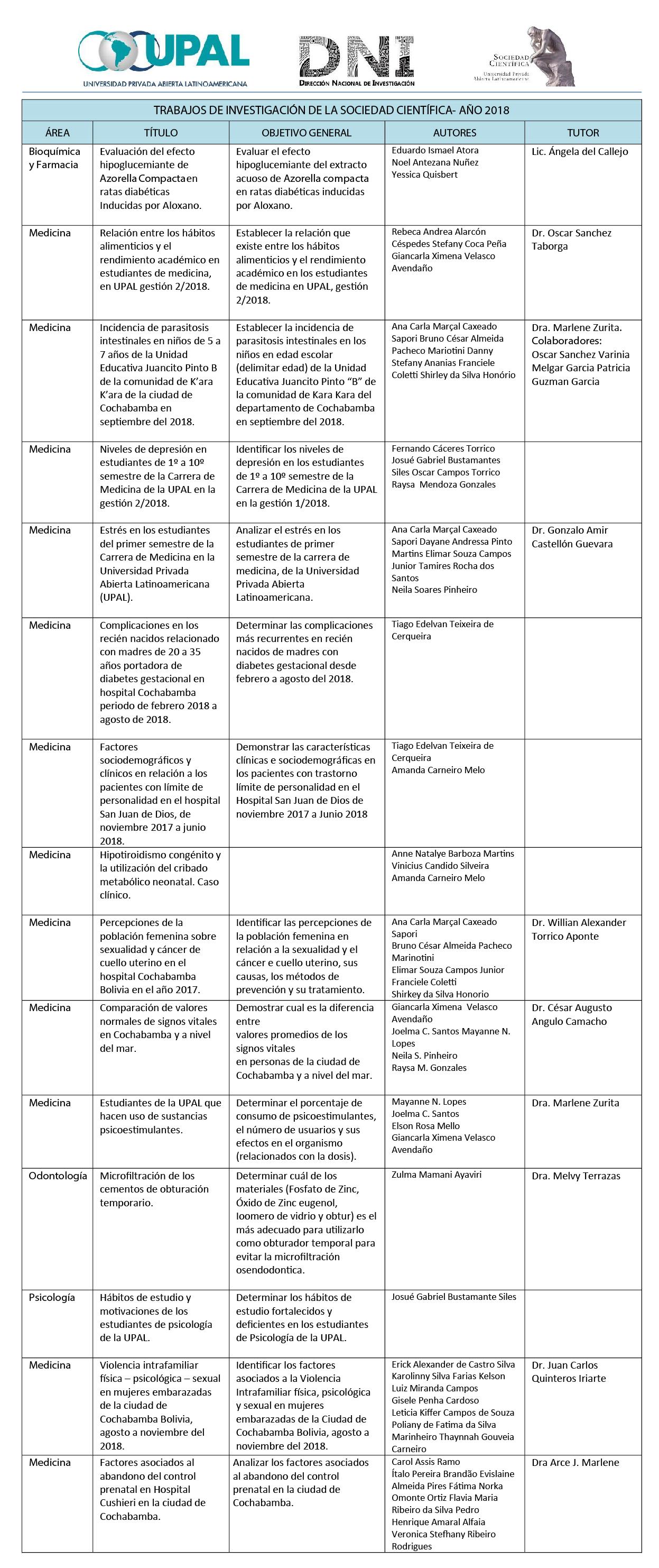 We summon all the students and teachers of our headquarters in the cities of Cochabamba and Oruro to join the UPAL Scientific Society during the current 2019 administration.