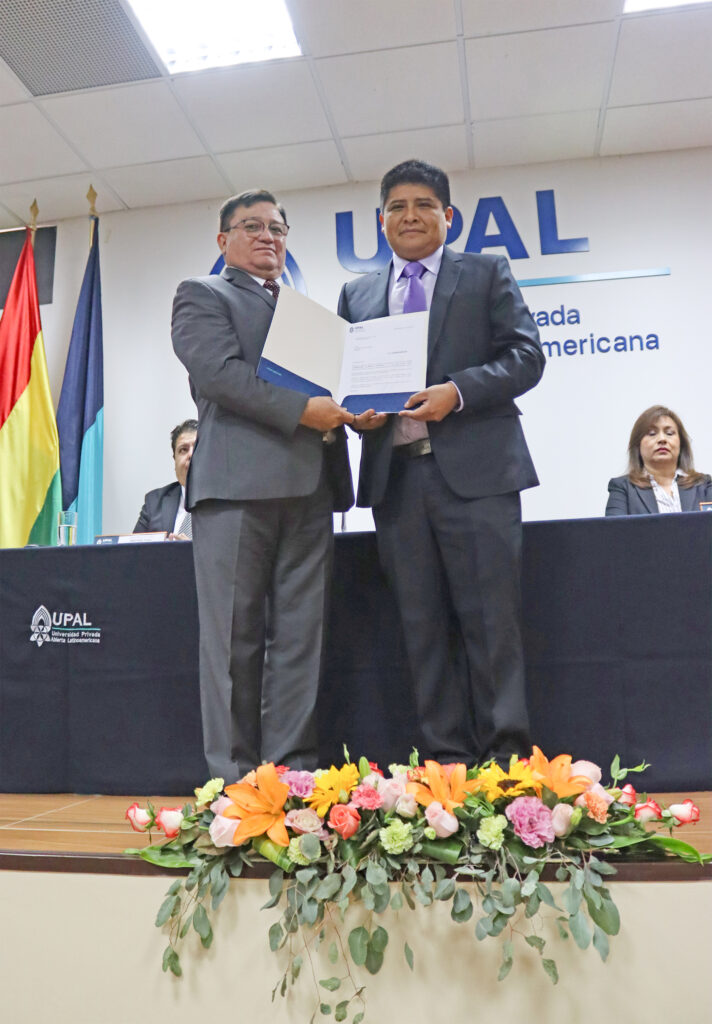 El jueves 23 de agosto, fue posesionado el nuevo Vicerrector de nuestro Organismo, cargo asumido a partir de esa fecha por José Miguel Luizaga Velasco, en un acto oficial presidido por Daniel Maldonado Arandia, Presidente de la Entidad Civil UPAL, contándose igualmente en testera con el Rector Ing. Boris Morales Oña y la Vicerrectora Administrativa y Financiera Nacional Wanda Karen Jaldín Echalar